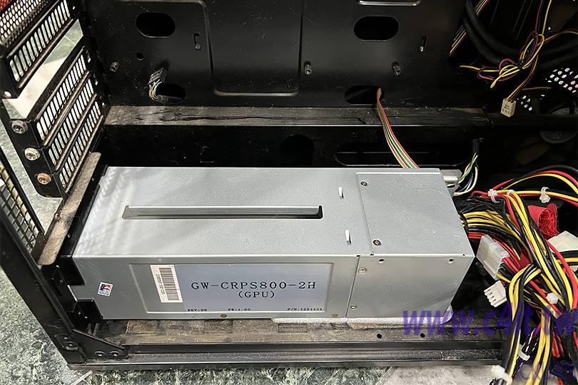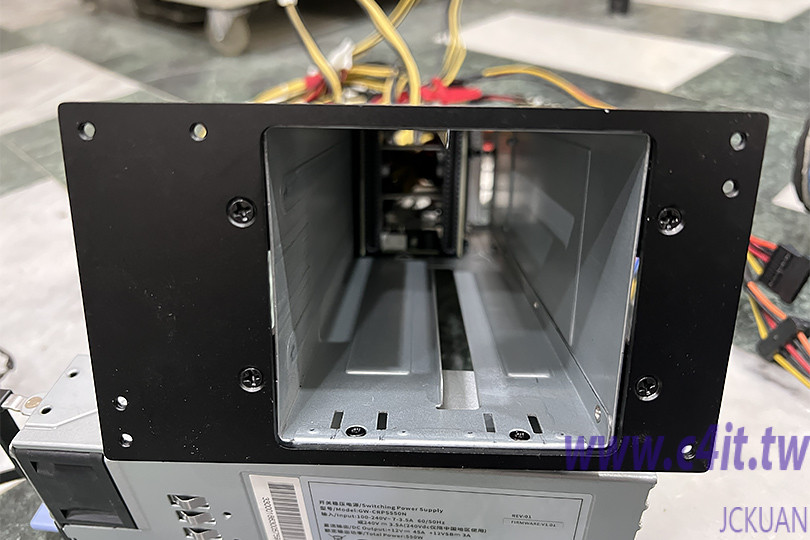 然而部分機殼考慮使用者可能有正反安裝的需求而預留螺絲孔位,直接將電源籠安裝時將會使得 CRPS 電源無法抽出,因此需要用修整機殼以便擁有抽取之用。